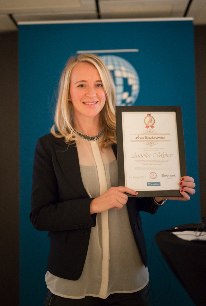 NordicTB Annika Myhre was awarded Inspiring Storyteller of the Year for her blog, Resfredag, by the travel company, Travellink.